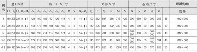 本风机为单吸入式,通常有NO4、4.5、5、5.6、6.3、7.1、8、9、10、11.2、12.5、14、16共13个机号。